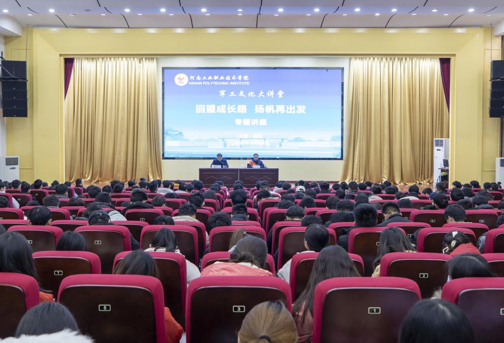 在学校大学术报告厅举行的“军工文化大讲堂”上,副校长王仁伟为余军伟颁发由校长王伟签发的“河南工业职业技术学院思想政治理论课特聘教授聘书”,余军伟以《回望成长路 扬帆再出发》为题,为广大师生做专题报告,报告由团委书记周大鹏主持。报告会上,余军伟讲述了自己在学校学习的感悟和走上工作岗位后精益求精的探索实践,生动阐释了新时代航天人“特别能吃苦、特别能战斗、特别能攻关、特别能奉献”的载人航天精神,对学生深入理解“敬业、精益、专注、创新”的工匠精神,有很强的针对性和指导性。“青春是用来奋斗的”“只要思想不滑坡,办法总比困难多”,余军伟写在日记中话语深切勉励了莘莘学生,他的学习经历、成长之路、工作成绩、奋斗精神等,成为同学们走向技能成才之路最生动、最亲切、最令人信服的教材。