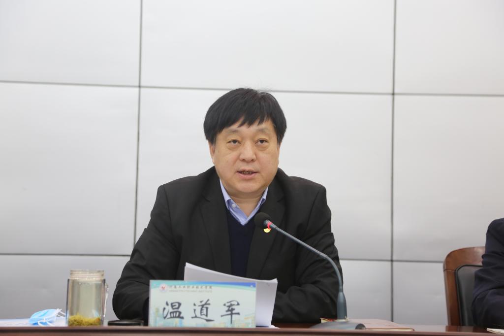 1月15日上午,我校2021年招生就业创业工作会议在孔明路校区第一会议室召开。校领导温道军、王伟、杜建根、王仁伟、刘纪山、贾庆成、屈保中、樊有平出席会议,全体中层干部、各院(系)招生就业办公室主任及部分受表彰人员参加会议。会议由校长王伟主持。