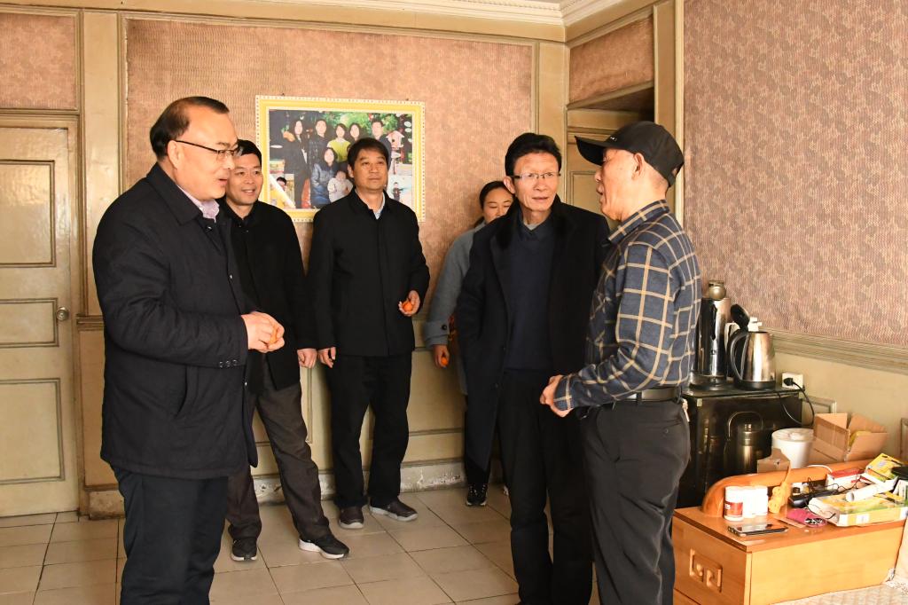 1月28日上午,学校党委书记温道军、校长王伟带领全体校领导分组走访慰问了孔明路校区家属区、光武路校区家属区、文化路家属区教职工代表,代表学校为他们送上节日问候和新春祝福。