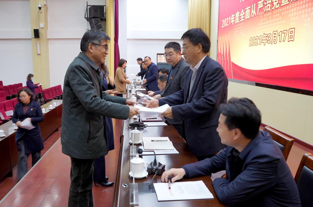 会上,观看廉政警示教育片《迷失的权力》,各部门、各单位主要负责同志向分管和联系的校领导递交了《党风廉政建设责任书》。(供稿/纪检监察室 撰稿/尹光兵 摄影/蔡丽霞 单位审核/王超 编审/朱恩义)
