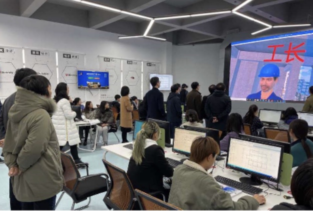 专家组详细查看了基础工程虚拟仿真实训室、主体工程虚拟仿真实训室、屋面防水工程虚拟仿真实训室、设备安装虚拟仿真实训室、装饰装修工程虚拟仿真实训室、工程测量虚拟仿真实训室、“1+X”职业技能鉴定实训室、安全教育虚拟仿真实训室等实训场地,详细了解建筑工程虚拟仿真实训基地的硬件设施、软件配置、教学团队、实训项目、服务专业、开设课程、实训管理等,并与虚拟仿真实训团队的教师进行了深入交流。