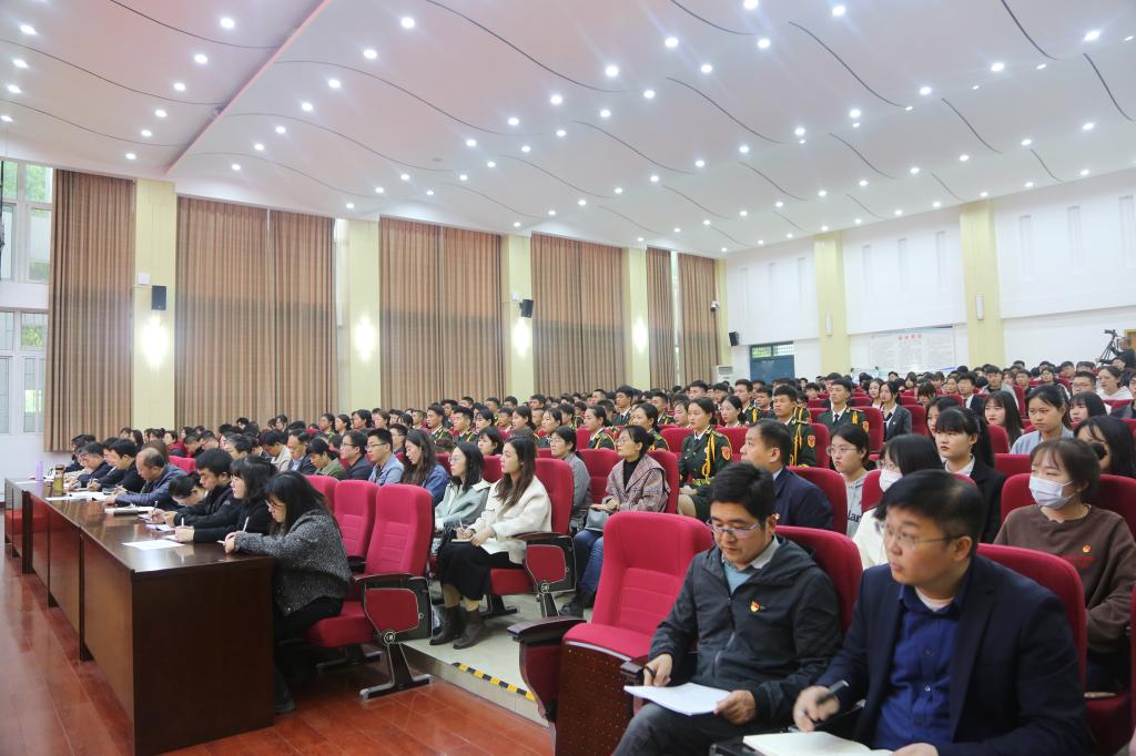 4月20日,学校党委书记温道军以《学习党的历史 汲取精神力量 争做担当民族复兴大任的时代新人》为题,在学校大学术报告厅为广大师生讲授党史学习教育专题思政课,思政课由学校副校长樊有平主持,学校马克思主义学院、团委、学生处等单位教师和三百余名学生代表聆听了讲座。