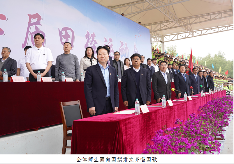 在庄严的国歌声中,五星红旗冉冉升起,全体师生面向国旗肃立齐唱国歌。面向校旗、运动会会旗,升校旗、运动会会旗,唱校歌。