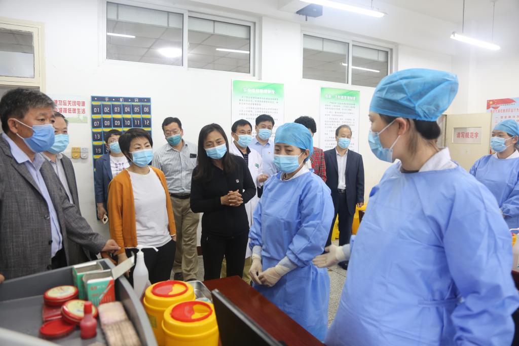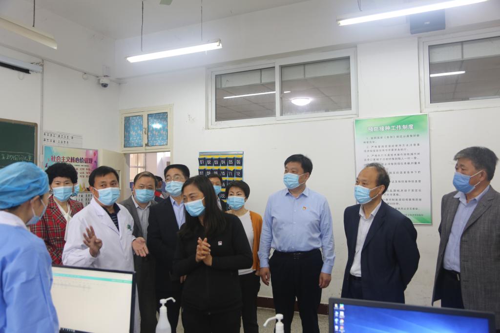 5月19日上午,国务院驻点工作组组长、国家卫生健康委监督中心二级巡视员贾玉萍一行4人到我校接种点督导新冠病毒疫苗接种工作。