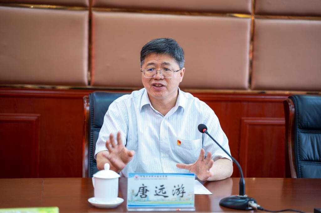 5月25日,河南省委军民融合发展委员会办公室常务副主任唐远游在学校孔明路校区4楼会议室亲切会见我校技能竞赛获奖选手。会议由校党委书记温道军主持,全体在家校领导、机械工程学院参赛队代表出席会议。