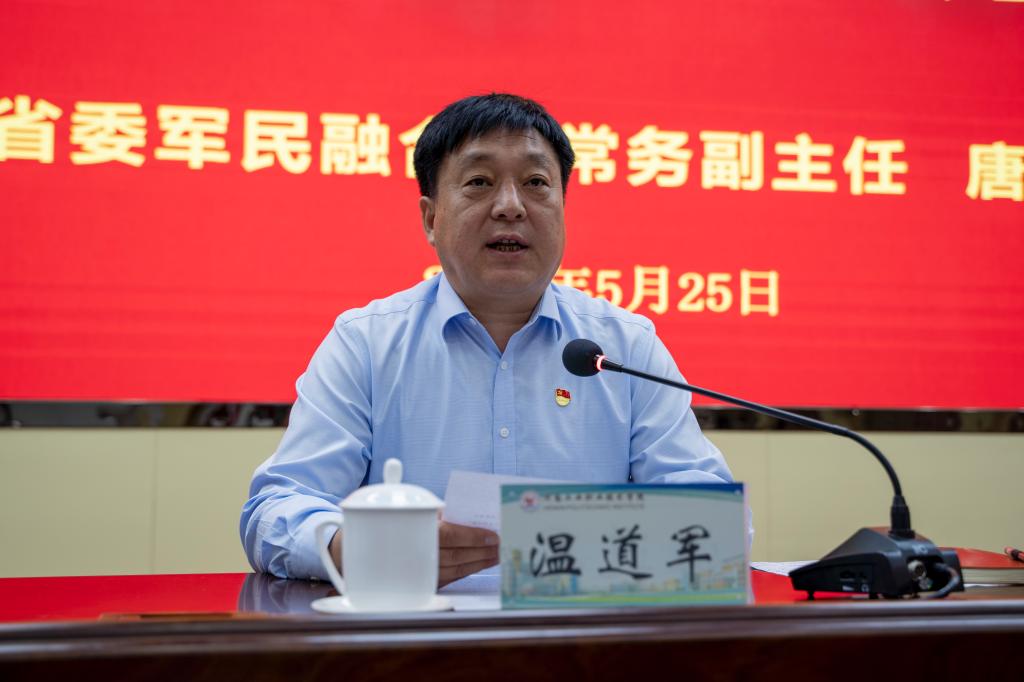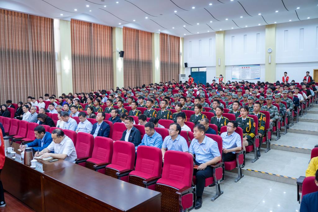 5月25日,河南省委军民融合发展委员会办公室常务副主任唐远游在学校孔明路校区学术报告厅为我校师生讲授党史学习教育专题思政课,校党委书记温道军主持,全体校领导、党委部门负责人、各党总支(直属党支部)书记、基层支部书记以及学生代表等400余人聆听授课。