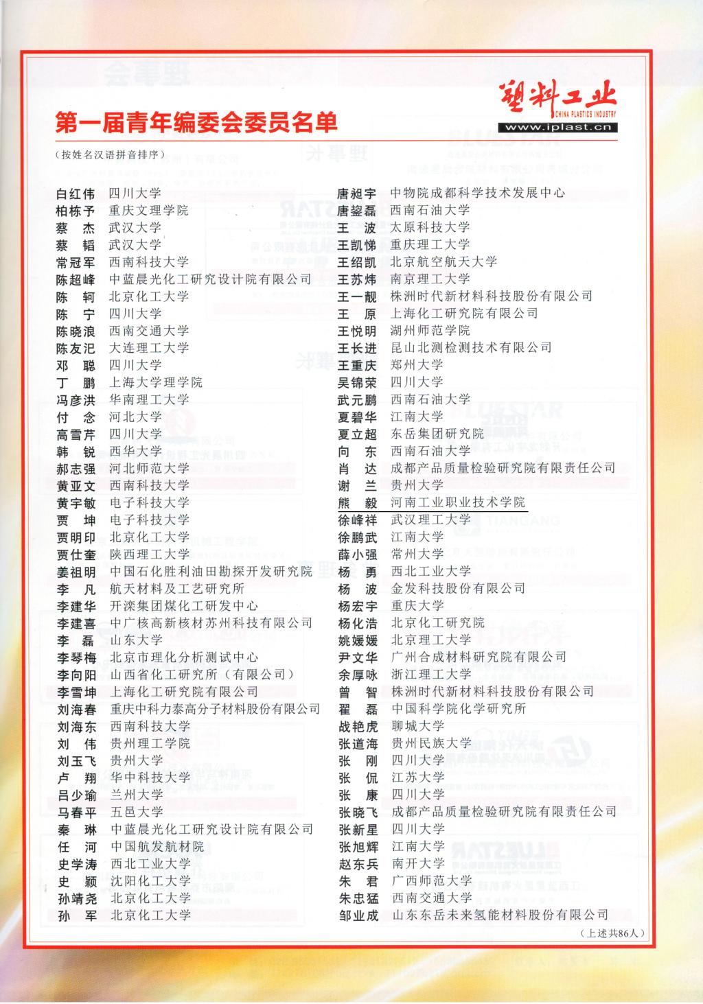 5月中旬,机械工程学院熊毅老师收到《塑料工业》杂志社聘书,被聘为青年编委。未来3年,他将与武汉大学、华中科技大学、四川大学等高校的青年学者们一道,通过学术交流、审稿等方面的工作,为推动塑料行业发展作贡献。