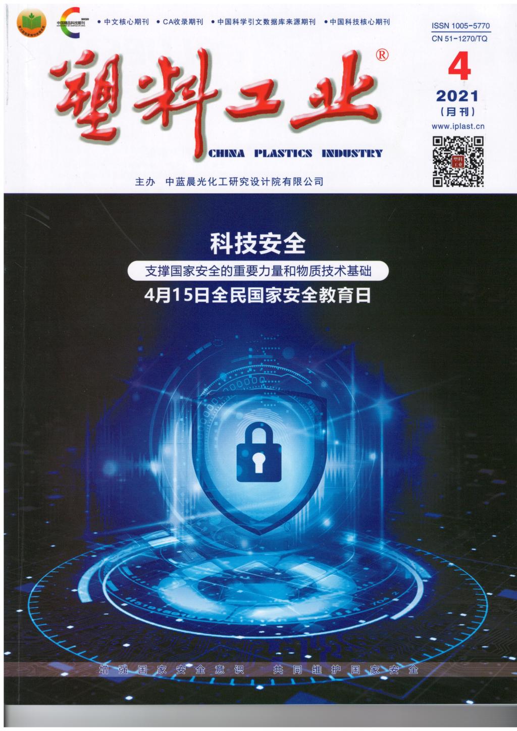 《塑料工业》杂志于1970年创刊,面向国内外公开发行的塑料行业专业期刊,是中文核心期刊、中国科学引文数据库(CSCD)核心库来源期刊,曾荣获2013年百种中国杰出学术期刊等10余项荣誉。中国科学引文数据库(Chinese Science Citation Database,简称CSCD),创建于1989年,收录我国数学、物理、化学等领域出版的中英文优秀期刊千余种,被誉为“中国的SCI”。