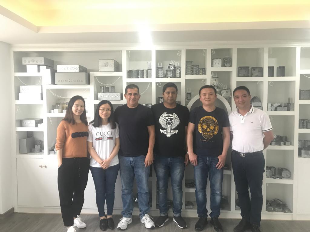 2012届毕业生刘东伟(左一)与海外客户合影