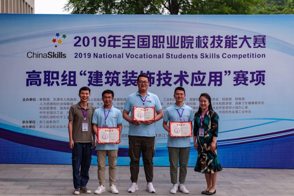 虚拟仿真助力三教改革。组建虚拟仿真教学团队,在建筑设计、建筑工程两个专业群实施虚拟仿真教学全覆盖,并面向南非留学生,开设虚拟仿真VR室内设计课程,提升国际影响力。开发虚拟仿真教学资源,编制虚拟仿真立体化教材,参加虚拟仿真设计与施工等技能竞赛。获评省级教学资源库1项、国家级 “十三五”规划教材1部、省级立体化教材1部、国家级精品在线开放课程1门、省级精品在线开放课程1门;获得全国职业院校技能大赛国赛二等奖1项、全国先进成图大赛一等奖2项、全国虚拟仿真施工技术大赛一等奖1项、全国高校数字艺术设计大赛获国赛三等奖1项、省级技能大赛获奖20余项。教师团队获得全国教学能力大赛省赛二等奖1项,获得全国高校数字艺术设计大赛(教师)获国赛三等奖1项和省赛二等奖3项、三等奖4项,获得创意河南艺术设计大赛银奖3项、铜奖3项。