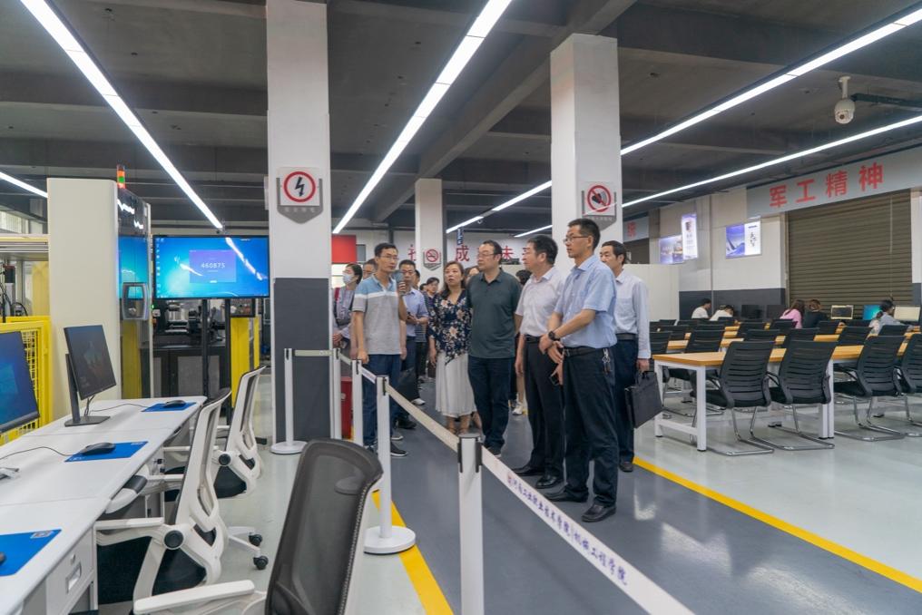 参会人员在王仁伟,胡雪梅等陪同下,参观了我校京东校园实训中心、精密制造中心及南都众创空间,对我校的学习环境和先进设备技术表示称赞。