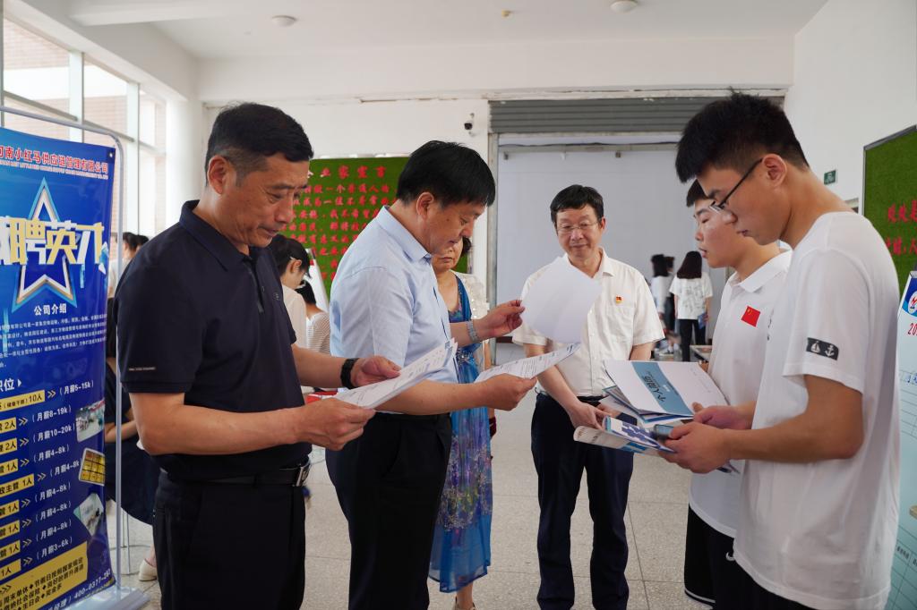6月11日,学校2021年毕业生夏季招聘双选会在图文信息楼二楼大厅成功举办。党委书记温道军、校长王伟和副校长王仁伟到双选会现场与招聘单位亲切交谈,了解用人单位需求及招聘情况,听取用人单位对学校人才培养的意见和建议,鼓励参会学生把握机会、积极应聘。