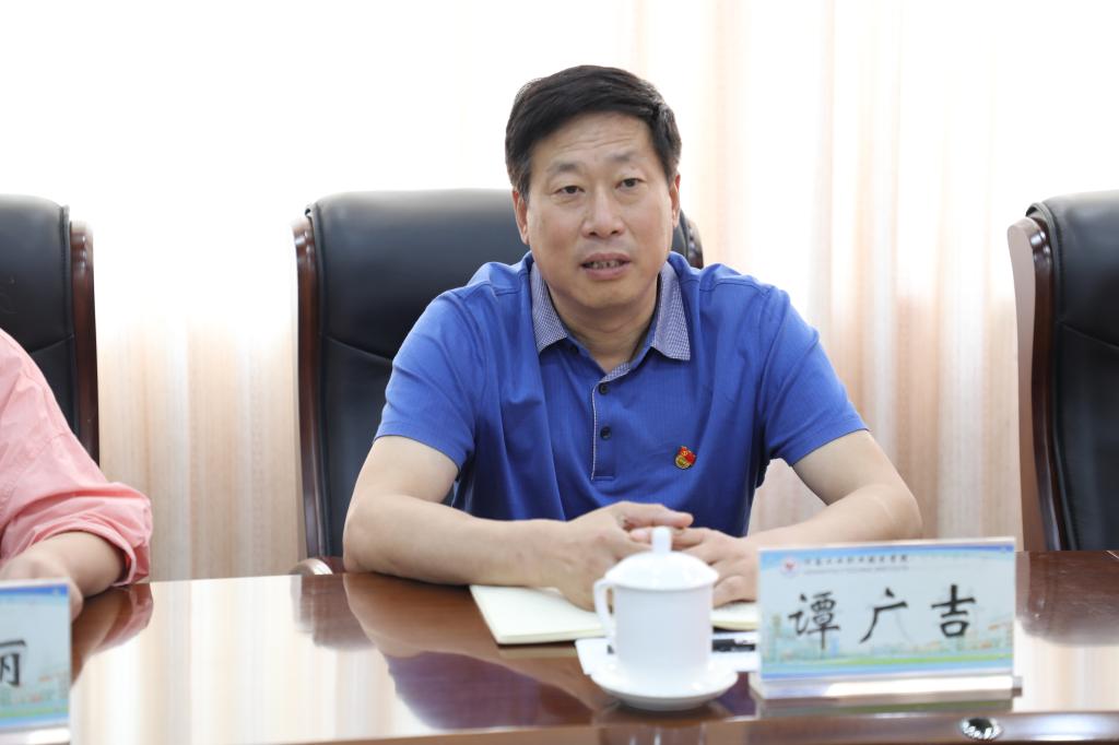 杜建根代表学校对谭广吉组长一行的到来表示热烈欢迎,并详细汇报了我校党史学习教育工作开展情况。
