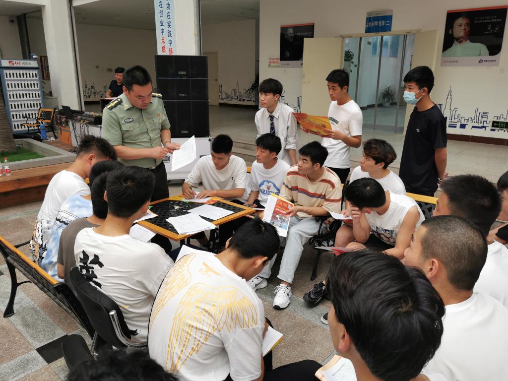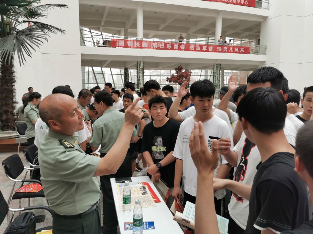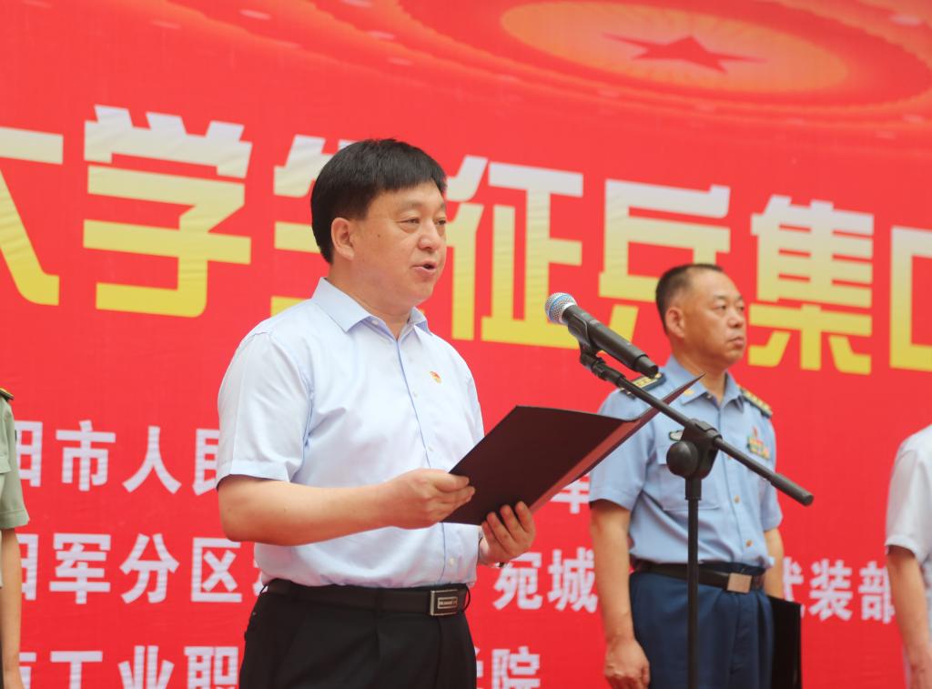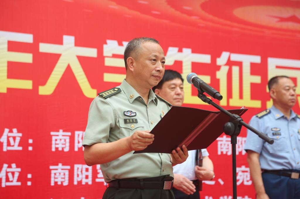 温道军代表学校致辞,他指出,我校高度重视大学生征兵工作,主动适应“一年两征”改革,通过强化奖惩激励机制,细化分解征兵任务,大力宣传征兵政策,一对一做好咨询服务,在全校形成了“人人关心国防、支持国防和征兵工作”的良好局面,自2017年以来,累计向部队输送1032名大学生,连续三年征兵数量位居全省高校第一名,连续四年超额完成征兵任务,连续五年荣获省、市征兵工作成绩突出单位,截至6月24日,下半年征兵报名1616人,征兵宣传动员效果显著。