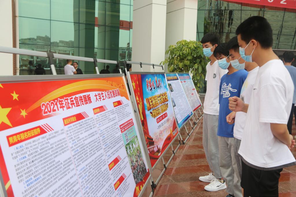 仪式结束后,与会领导和师生依次到“投身绿色军营、追梦无悔青春”主题板前签名。同时为解决我校大学生报名集中的矛盾问题,市征兵办公室首次集中13个县市区,根据各辖区报名大学生情况,对在我校报名应征的学生,现场疏导分流回各县报名达200余人,有效改善了各县(市、区)大学生应征报名不均衡的情况。