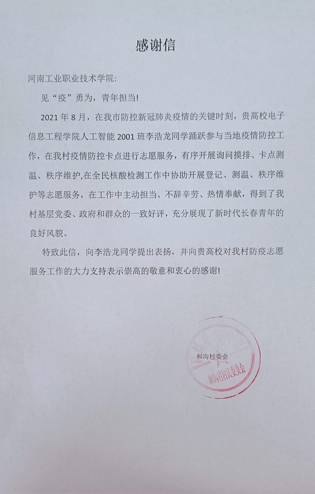 从防汛到防疫,哪里有需要,哪里就有河南工业职业技术学院青年学子的身影,在这场没有硝烟的阻击战中,他们用青春诠释战“疫”担当,构筑起一道道“青春防线”,彰显新时代青年的责任和担当。