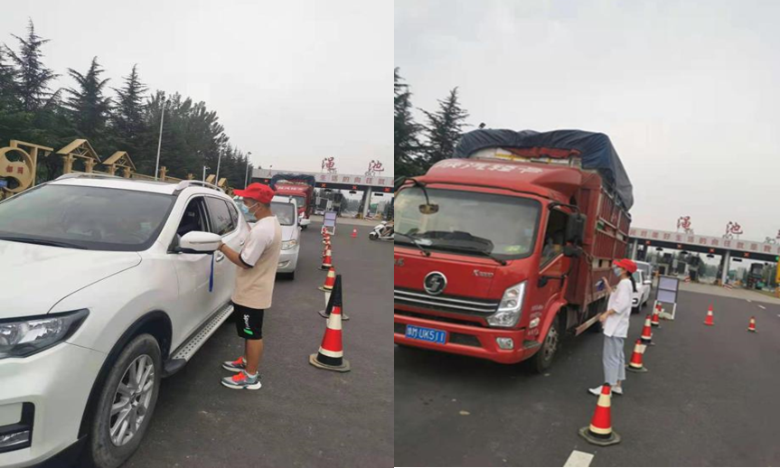 “您好,请问您从哪里过来的,请出示您的行程码”,“请您注意行车安全,不要疲劳驾驶”,“请让我为您测量体温”,“祝您一路顺风”。从渑池站下高速的司机会遇到这样青涩的面孔,他们是暑假返乡的文化旅游与国际教育学院商务英语1903班柳典和杨国杰。