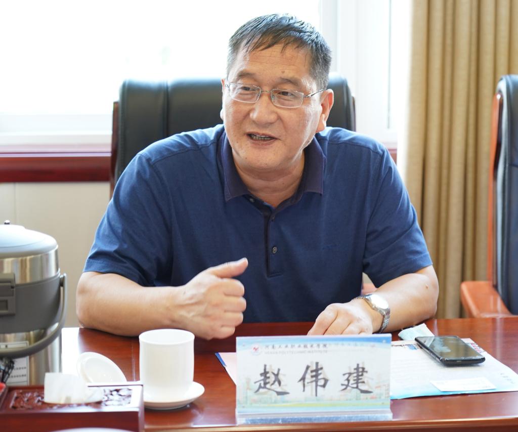 座谈会上,王伟代表学校对赵总一行的到来表示热烈欢迎,详细介绍了学校的办学特色、人才培养、校企合作开展情况。他表示,学校紧抓职业教育大发展的机遇,入选中国特色高水平高职学校和专业建设计划建设单位,学校坚持走产教融合、校企合作发展之路,和中国长城科技集团有着广阔的合作前景,希望双方进一步加强交流与沟通并对下一步学校如何加快与河南长城多方位、多领域的合作提出殷切希望。