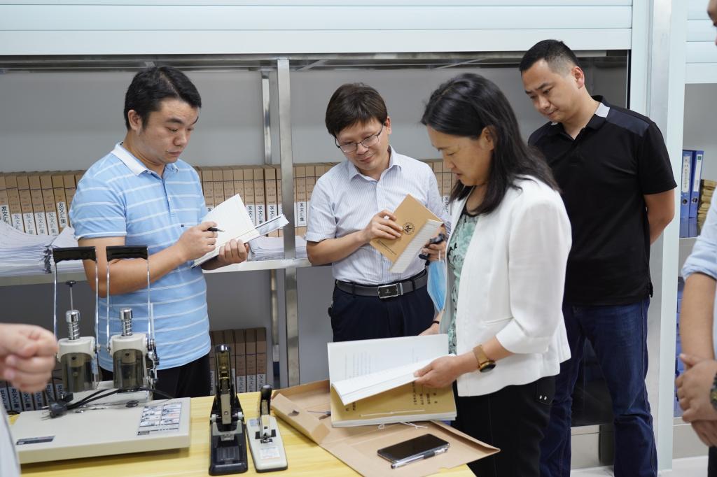 检查组一行实地查看了学校机要档案室和两个档案资料室,对学校档案制度建设、基础设施建设、业务建设、数字化建设以及档案文化建设等进行了详细了解和询问。李荣胜从学校档案工作概况、保障机制健全、体系建设完备、资政育人成效显著、队伍素质优良、问题短板突出等方面进行了专题汇报。