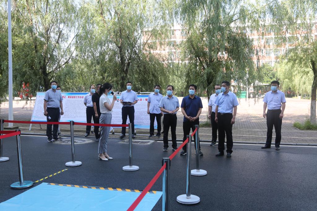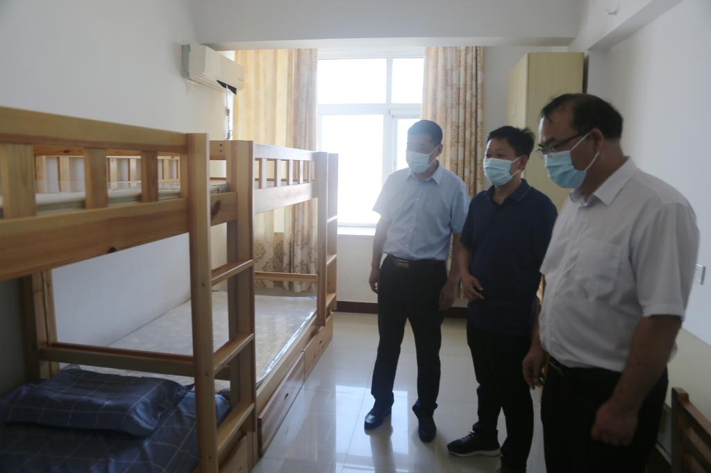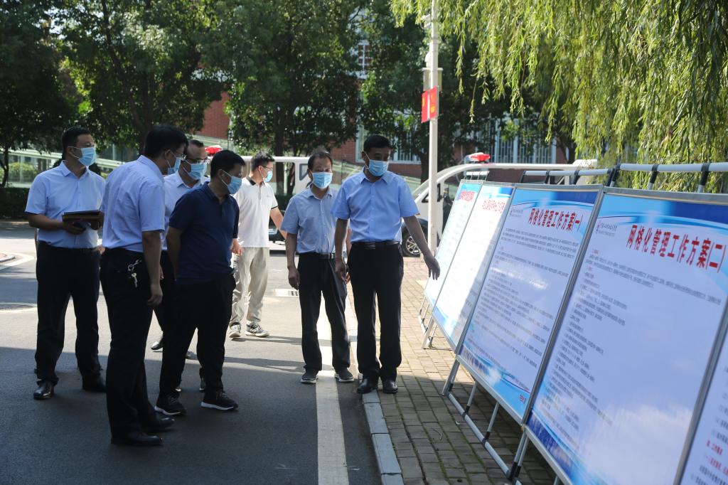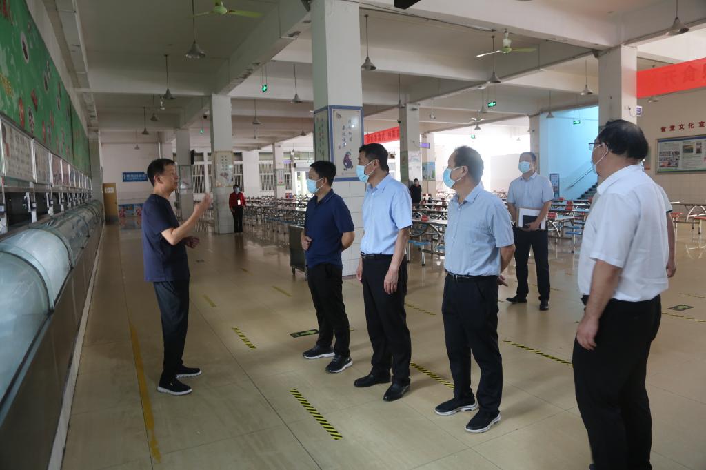 9月10日上午,南阳市教育局副局长黄平一行到我校检查指导开学准备工作。校长王伟、党委副书记杜建根,疫情防控九个工作专班负责人陪同检查并详细介绍我校开学准备工作情况。