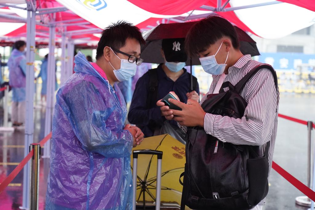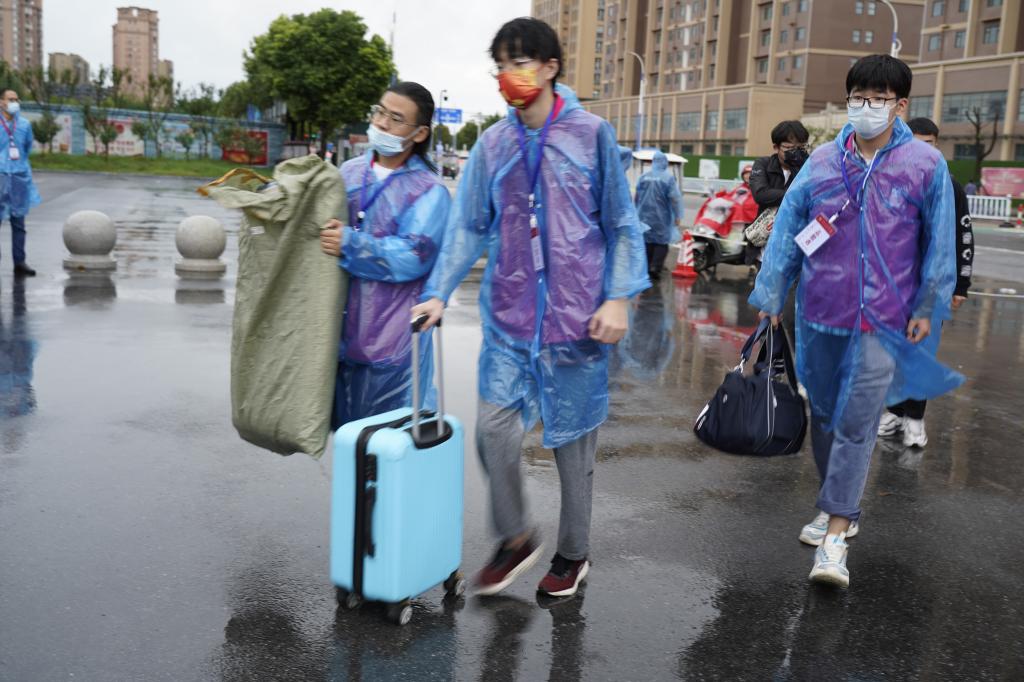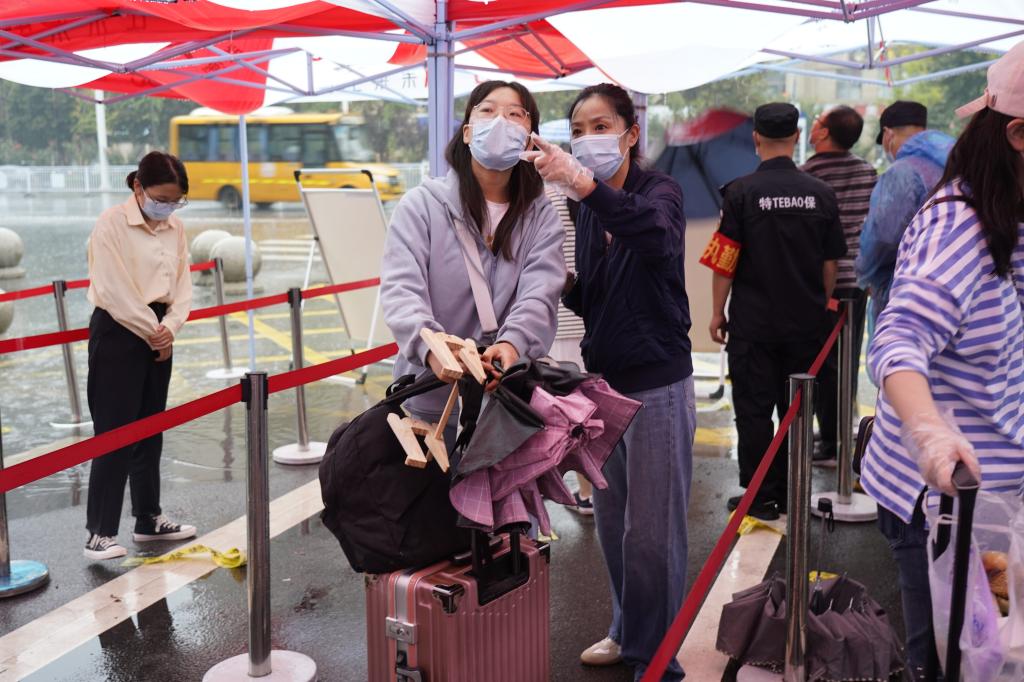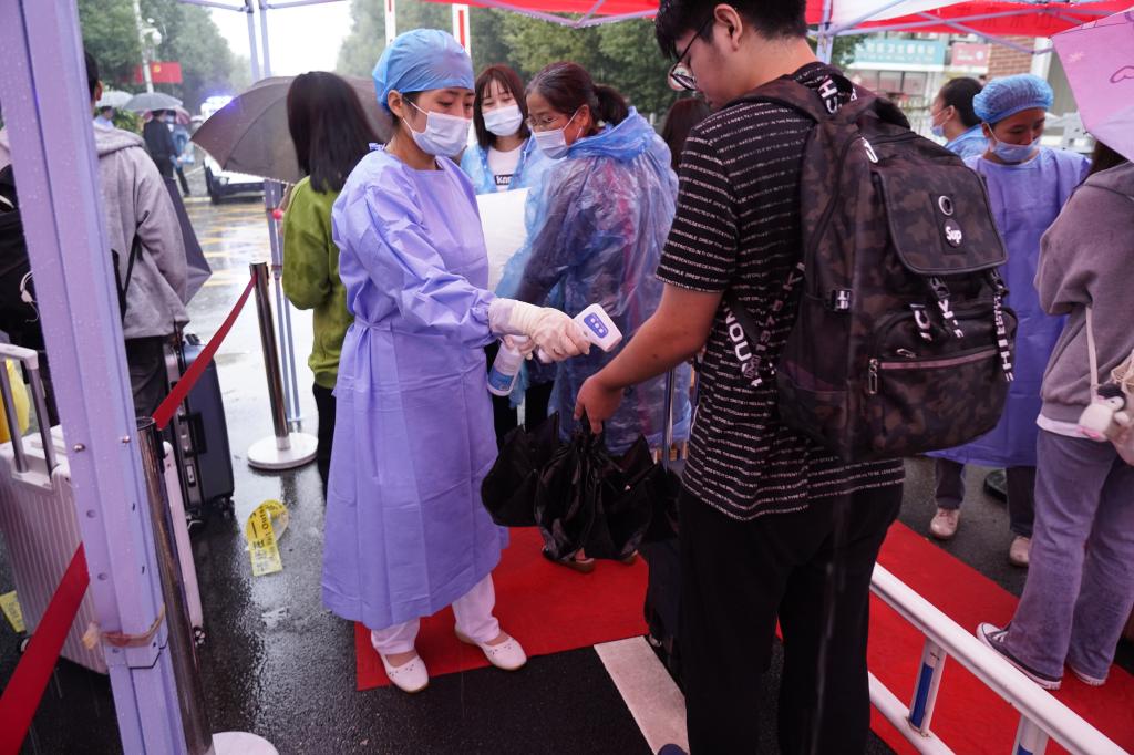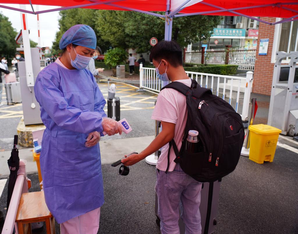 首批返校学生,佩戴口罩、间隔1米排队,按照“一测二查三核四通过”的流程,逐一进行体温测量,查验通信行程卡、防疫健康信息码,持48小时内核酸检测阴性证明和个人14天的健康状况登记表,经过身份信息核验、行李消杀后,有序入校报到。