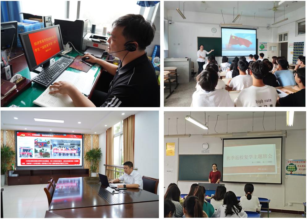 “开学第一课”分为学校层面和学院层面。上午8:10,学校组织全校学生通过线上钉钉直播的方式学习课程。马克思主义学院王美华老师以《奋斗百年路 启航新征程》为题,从丰功伟绩 恢宏史诗、精神血脉 代代相传、以史为鉴 开创未来三个方面带领同学们学习习近平总书记“七一”重要讲话精神。学生处副处长曲令晋以《提高文明素质 共建和谐校园》为题,为同学们讲解了疫情防控常态化期间学校的管理制度、四级网络化管理工作体系,以及在宿舍、食堂、教学楼、实训室、图书馆等场所的文明行为规范。教务处副处长郭威以《教学组织与管理》为题,从教学进度安排、学习场所的环境保障、实施教学场所网格化管理、校内教学活动的组织与管理、实施“日报告、零报告”制度五个方面为同学们介绍了新学期的教学安排。保卫处马时骐老师以《应对潜伏在周围的安全隐患》为题,讲解如何在电信网络诈骗、交通安全、用电安全、消防安全、饮食安全与卫生防疫五个方面提高安全防范意识。
