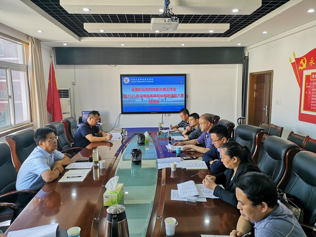 近日,学校在孔明路校区办公楼第三会议室召开全国职业院校技能大赛工作会暨2021年河南省高等职业教育技能大赛启动会,副校长贾庆成出席并主持会议,教务处及各学院院长参加会议。