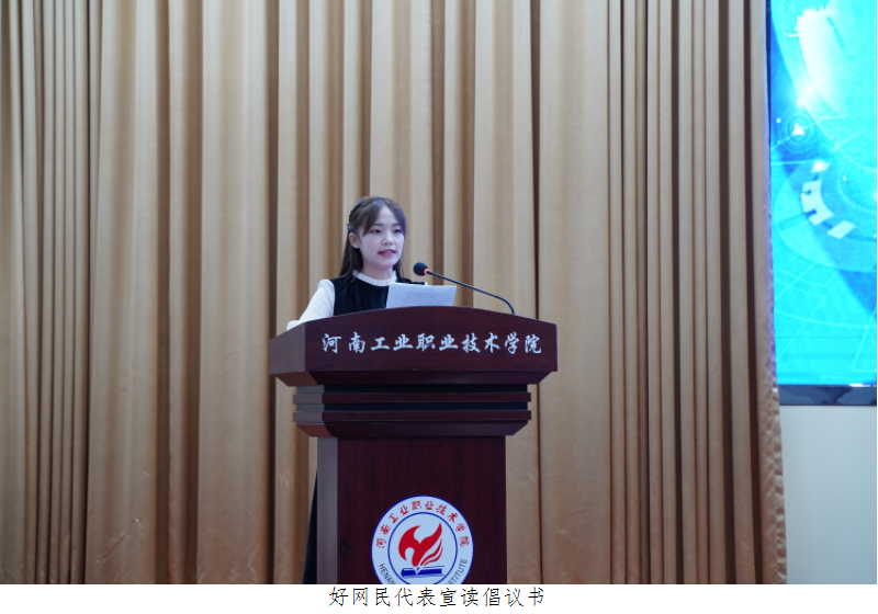 学校电子信息工程学院学生樊婷婷作为好网民代表宣读倡议书,号召广大青年明辨善思,维护网络安全底线;修德立身,提升网络文明素养;勤学笃实,释放网络正能量。