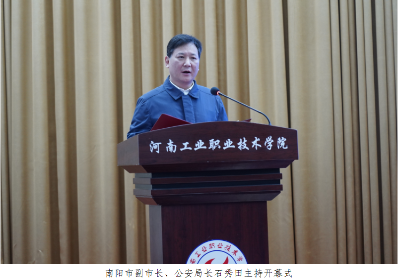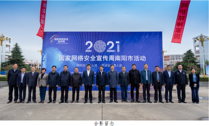 10月11日上午,2021年国家网络安全宣传周南阳市活动开幕式在我校孔明路校区学术报告厅举行。本次活动由南阳市委宣传部、市委网信办、市公安局、市教育局、市工信局、市文广旅局、人民银行南阳中心支行、市总工会、团市委、市妇联、市通管办、河南工业职业技术学院等单位联合主办。市委常委、副市长马冰,副市长、公安局长石秀田,学校党委书记温道军,校长王伟,南阳农业职业学院党委书记张士君,南阳医学高等专科学校校长王立义,南阳师范学院党委副书记谢冰松,南阳理工学院党委副书记张伟,以及各活动主办单位、市委网信委成员单位、网络安全知识竞赛部分获奖单位的主要负责人员、学校师生代表及新闻媒体记者等参加开幕式。开幕式由石秀田主持。
