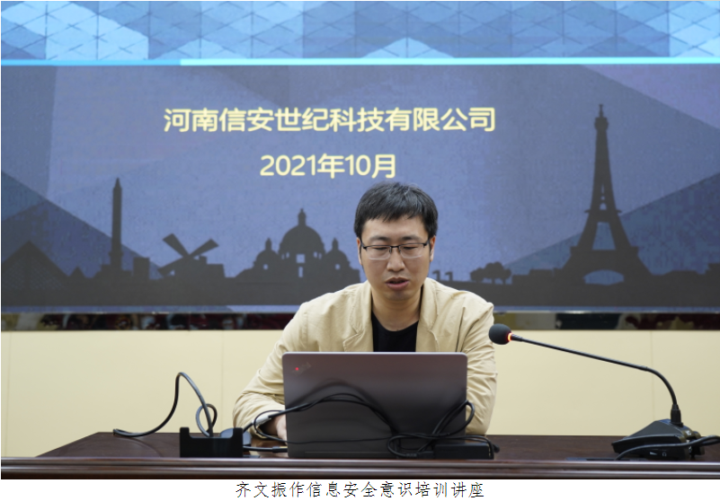 河南信安世纪科技有限公司齐文振以《树立信息安全意识 筑牢网络安全防线》为主题作信息安全意识培训讲座。