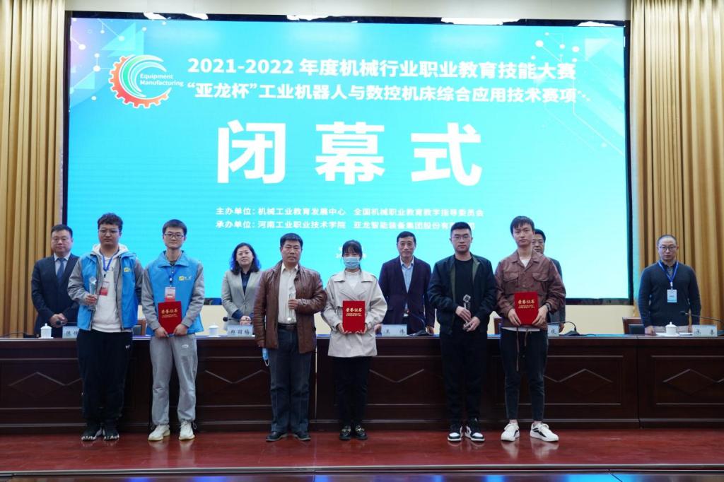 10月15-10月17日,2021-2022年度机械行业职业教育技能“亚龙杯”工业机器人与数控机床综合应用技术赛项在我校成功举办。机械工业教育发展中心副主任,全国机械职业教育教学指导委员会秘书长郑丽梅同志出席闭幕式并讲话。来自全国各高职院校的30支代表队参加了比赛。