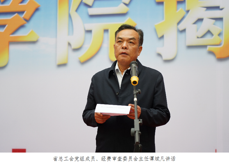 谭斌凡表示,成立省国防邮电工会工匠学院,是贯彻落实习近平总书记指示精神的务实举措,是深化产业工人队伍建设改革的具体行动,也标志着国防邮电系统在打造技能人才成长平台上又迈出了重要一步。河南工业职业技术学院师资队伍强大、教学设施完善,同时也是河南省国防科技工业职工技能竞赛基地。在此挂牌成立工匠学院,既能充分利用学校的培训资源优势,又能进一步强化省国防邮电工会的服务功能,必将对促进全系统职工技能素质提升注入新动力,在高质量建设现代化河南、高水平实现现代化河南中彰显国防邮电系统广大职工的主力军作用。谭斌凡就充分发挥工匠学院的作用提出了三点意见,一是发挥产业工人队伍建设改革牵引作用。二是发挥工匠人才培训阵地作用。三是发挥职工创新交流平台作用。最后谭斌凡提出了殷切希望,希望参加工匠学院首届培训的学员能在精益求精中打造出更多的“中国制造”品牌,在创新突破中释放出更大的“中国创造”活力;希望各单位工会进一步畅通技能人才职业发展通道,着力打造素质高、技术精、能力强的技能人才队伍;希望在国防邮电工会工匠学院的带动下,工匠精神成为全系统广大职工的价值认同和共同追求,全省国防邮电系统涌现出更多的中原大工匠和大国工匠。