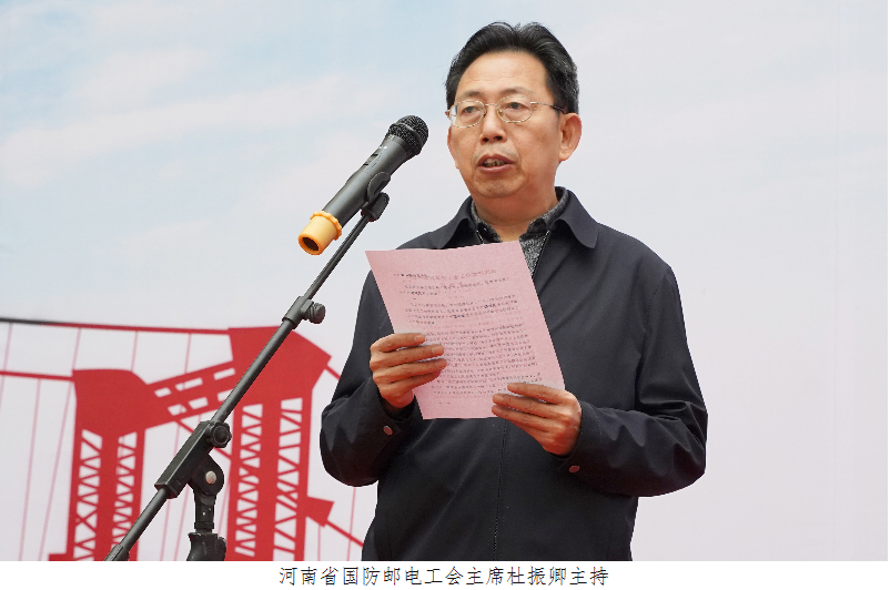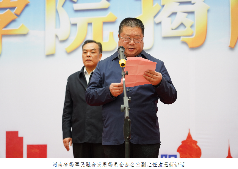 10月19日,河南省国防邮电工会工匠学院揭牌仪式在我校孔明路校区图文信息楼二楼大厅举行,省总工会党组成员、经费审查委员会主任谭斌凡,省委军民融合发展委员会办公室副主任袁玉新,省总工会兼职副主席、全国劳动模范孟祥忠,省总工会劳动和经济工作部部长张培元,南阳市总工会党组书记赵浩,省国防邮电工会兼职副主席、全国劳动模范、国家级技能大师梁兵,校党委书记温道军出席揭牌仪式,河南省国防邮电系统各工会负责人、创新工作室领衔人及我校相关部门负责人参加。仪式由河南省国防邮电工会主席杜振卿主持。