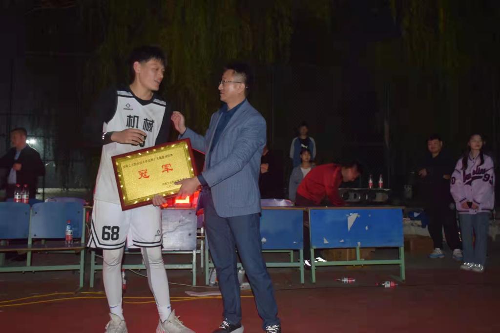 闭幕仪式上,裁判长孟升宣布了本次比赛成绩,体育教学部副主任王维为本次联赛扣篮大赛的冠军来自机械工程学院的杨政涛颁奖;测绘环保工程学院院长唐卫平为测绘环保工程学院颁发了冠军奖牌;机械工程学院院长朱成俊为机械工程学院颁发了冠军奖牌。