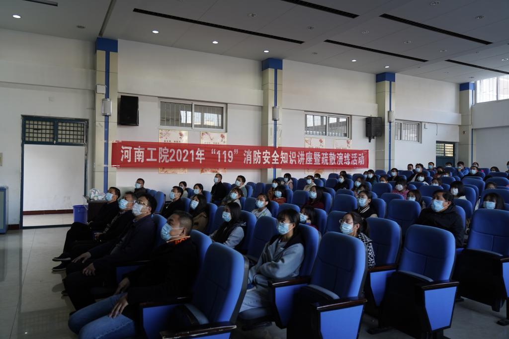 为进一步提高学校师生消防安全意识,夯实校园火灾防控工作基础,落实“119”消防宣传月活动方案,11月17日,学校在小学术报告厅举行消防安全知识讲座暨疏散演练活动。南阳市消防救援支队防火监督科王润宇主讲,保卫处、国资处、后勤服务中心有关负责同志和后勤服务人员、实验实训室管理人员、辅导员和学生代表参加讲座,讲座由保卫处处长宋江照主持。