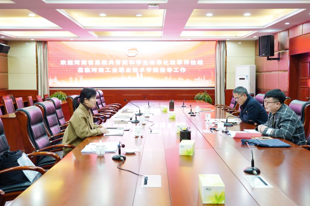 为持续深化高校共青团和学生会组织改革创新,提升改革实效,12月8日下午,由南阳理工学院团委书记郭兴华担任组长,南阳职业学院团委副书记董曙和南阳师范学院团委组织部部长马峭组成的河南省高校共青团和学生会深化改革评估第十五工作组莅临我校检查指导工作,对我校共青团和学生会深化改革情况进行实地评估验收。