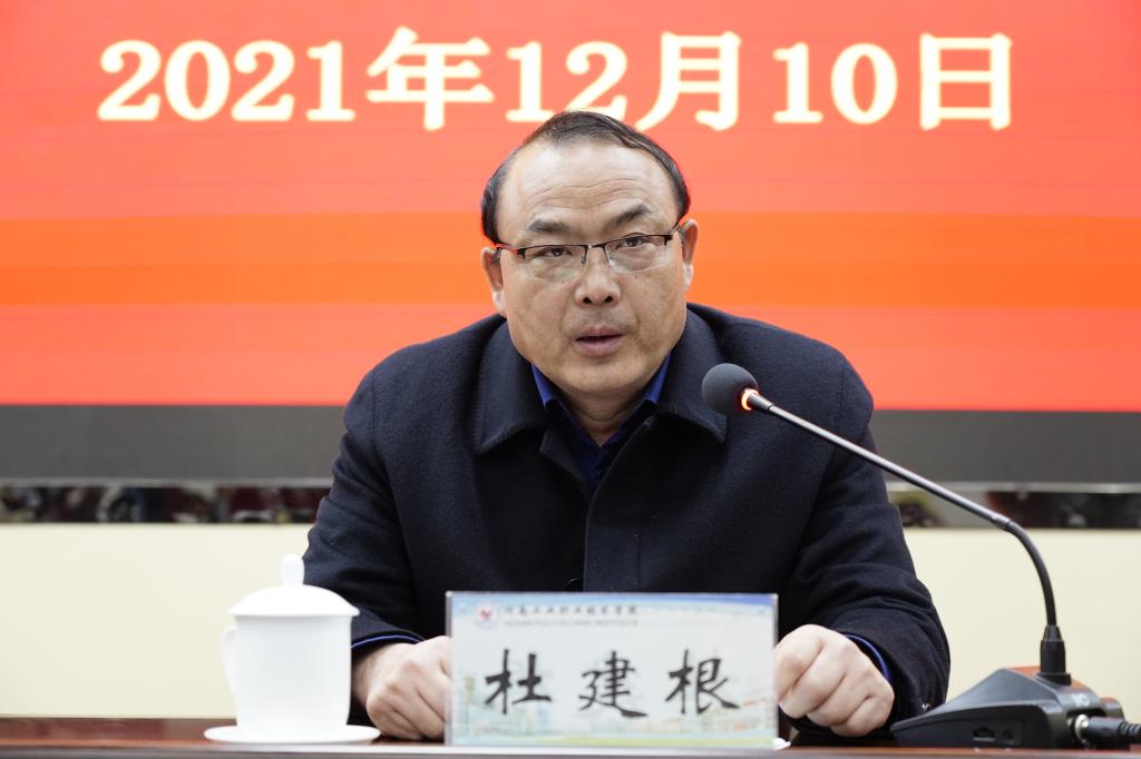 杜建根就学习领会好陶教授报告的主要内容和做好今后的党建工作,提出三点要求:一是提高政治站位,增强责任意识。当前正值学校加快推进中国特色高水平高职学校的关键时期,迫切需要有一支信念过硬、素质过硬、能力过硬、作风过硬的党务干部队伍,把党组织的政治优势和政治作用发挥好,教育引导广大师生党员攻坚克难、奋勇争先,不断开创基层党组织工作新局面。二是善于学习,熟悉支部工作。党支部书记和党务工作者要深入学习领会培训内容,在基层党建方面切实下真功夫、下实功夫,创新党建工作思路方法,进一步推动党建工作与教学科研工作互融互促,把党组织的领导力和组织力切实转化为推进中心工作的强大动力,不断提升学校党建工作水平。三是充分发挥模范带头作用,激发师生动力。党务工作者是党的活动和各项工作的组织者和践行者,是做好学校党建工作的关键力量。学校各级党务干部要把学习宣传贯彻党的十九届六中全会精神作为当前和今后一个时期的重大政治任务,充分利用“三会一课”“主题党日”、学习强国等形式进行多渠道立体化学习和宣传,要把学习贯彻党的十九届六中全会精神与开展党史学习教育结合起来,扎实开展“为群众办实事”,不断激发师生党员和教职员工的干事创业热情,为建设特色鲜明的高职院校做出更大的贡献。
