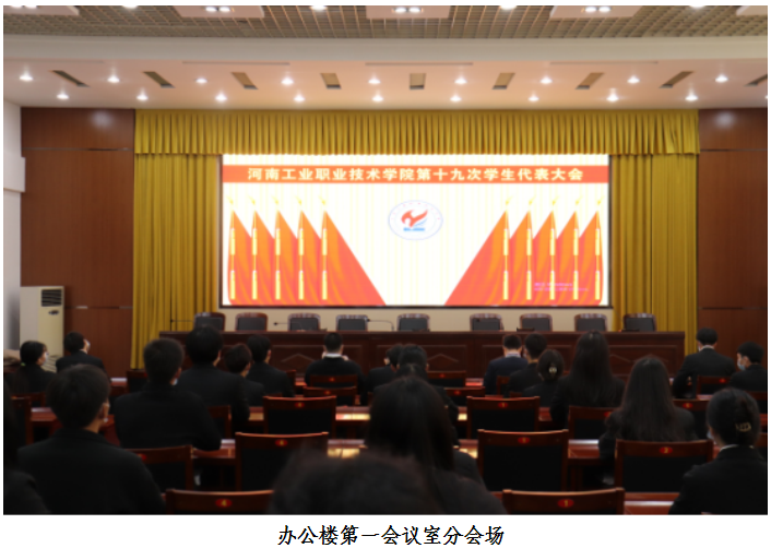 12月17日下午,河南工业职业技术学院第十九次学生代表大会在大学术报告厅隆重举行,市学联秘书长、共青团南阳市委少年部部长李敬卓、党委副书记杜建根、副校长王仁伟出席大会,党委组织部、党委宣传部、纪检监察室、党委学工部、党委武装部等相关部门负责同志及各二级学院(中心)党总支书记、副书记、团总支书记、学工科科长及学生代表参加会议,为落实疫情防控有关要求,大会同时设两个分会场,以实时直播的形式同步举行,大会由团委副书记杨继良主持。