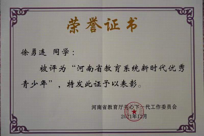 12月7日,省教育厅纪念关工委成立30周年暨全省教育系统关心下一代工作表彰大会在郑州举行。会议对全省教育系统关心下一代工作先进集体和先进个人进行了表彰。我校关心下一代工作委员会荣获“河南省教育系统关心下一代工作先进集体”荣誉称号;樊有平同志荣获“河南省教育系统关心下一代工作荣誉奖”荣誉称号;姬生同志荣获“河南省教育系统关心下一代工作先进工作者”荣誉称号;徐勇连同学荣获“河南省教育系统新时代优秀青少年”荣誉称号。