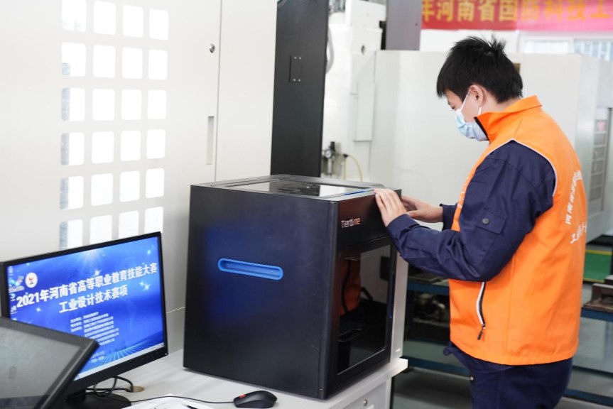 12月21日至23日,2021年河南省高等职业教育技能大赛“工业设计技术”赛项在我校成功举办,来自全省15所高职院校的28支代表队参赛。省教育厅党组成员、副厅长陈垠亭,省教育厅政策法规处(民办教育处)处长徐军保,市政府党组成员、二级巡视员胡云生,市教育工委副书记、二级巡视员张清范,市政府副秘书长张喜雨,市政府四科副科长张喜,学校党委书记温道军、王伟等莅临赛场指导。