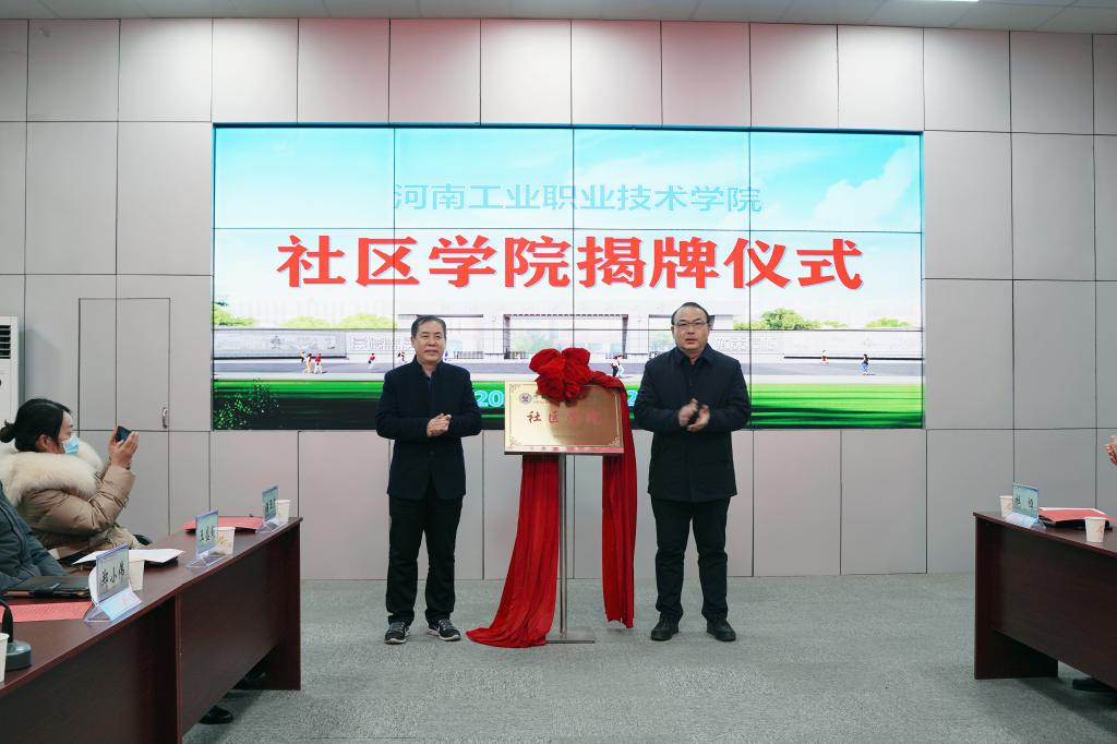12月29日上午,河南工业职业技术学院社区学院揭牌仪式在学校光武路校区举行,南阳市教育局副局长贺晨辉、成人教育教学研究室主任郑小伟、职成教科科长王盛超,南阳市建中社区党支部书记李庭洲、红卫社区党支部书记潘玉杰、白塔社区党支部副书记郭保华,校党委副书记杜建根、副校长王仁伟出席揭牌仪式,相关部门负责人及继续教育学院全体人员参加,仪式由王仁伟主持。
