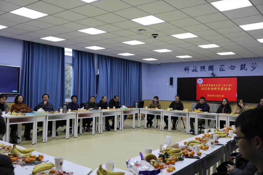 2021年12月31日下午,X3205智慧教室一片喜气洋洋,教务质管发规党支部(分工会)2022年新年茶话会在这里举办,副校长贾庆成同党支部全体成员欢聚一堂,一起回顾2021年走过的历程,展望新一年美好前景,共迎2022年元旦,茶话会特邀学校督导李孔昭、李华林、康新龙参加,茶话会由党支部书记杜恒主持。
