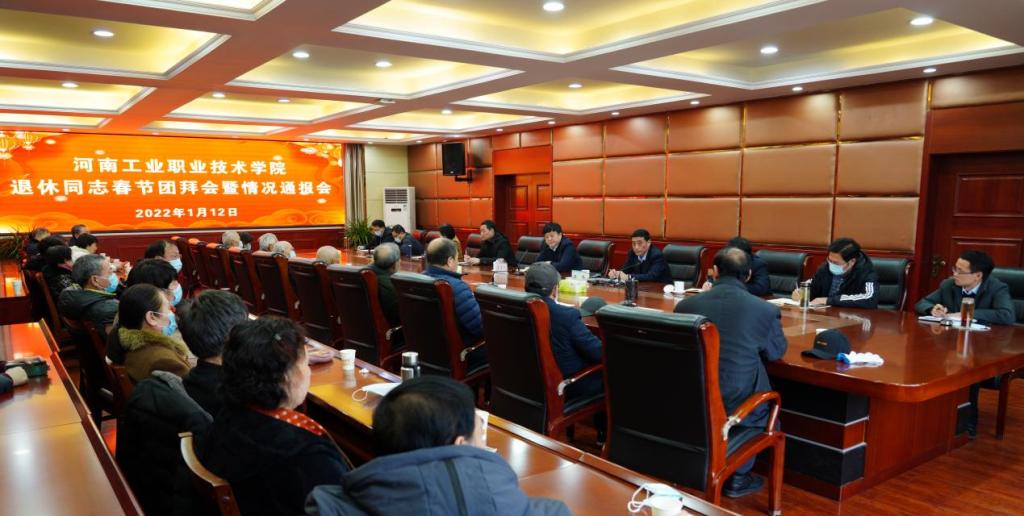 2022年1月12日,学校在孔明路校区行政楼四楼会议室召开退休同志春节团拜会暨情况通报会。党委书记温道军、校长王伟、副校长樊有平出席,各有关部门负责人和退休同志代表参加会议。会议由樊有平主持。