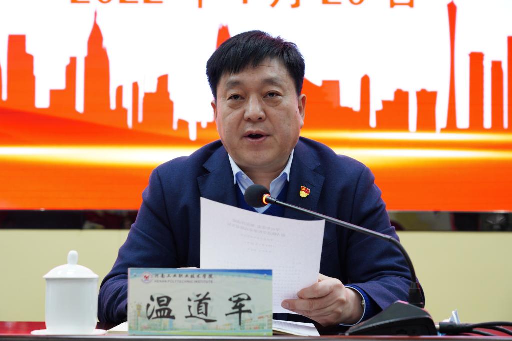 2022年1月20日,学校党史学习教育总结会议在孔明路校区大学术报告厅举行。会议总结学校党史学习教育开展情况,对下一步持续推进党史学习教育常态化、长效化,不断巩固拓展党史学习教育成果作出部署。校领导温道军、王伟、杜建根、王仁伟、刘纪山、贾庆成、李荣胜、屈保中、樊有平出席,全体中层干部参加。会议由校长王伟主持。