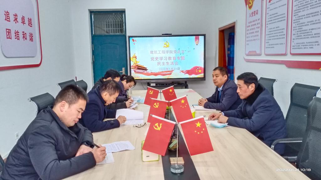 根据学校党史学习教育专题民主生活会工作部署,1月21日,校长王伟深入财务党支部、建筑工程学院党总支,指导党史学习教育专题民主生活会,学校督导组成员周大鹏陪同。