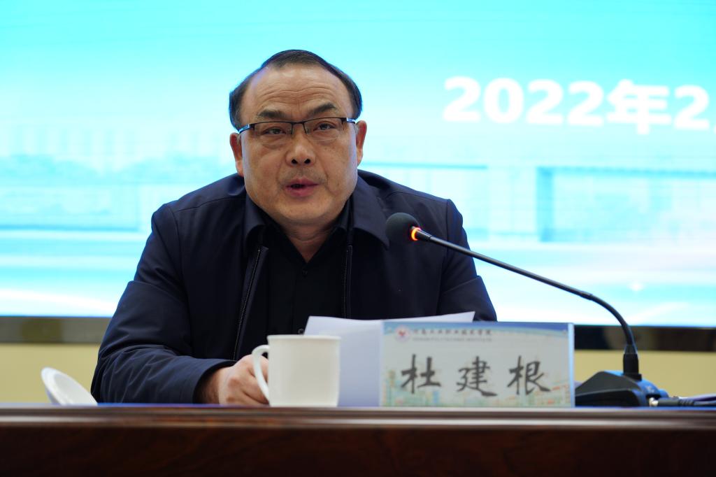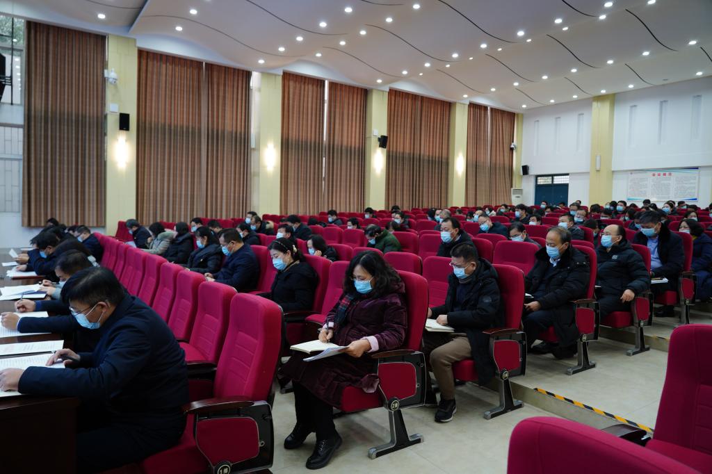 2月17日,学校2022年度工作会议在孔明路校区大学术报告厅召开。会议以习近平新时代中国特色社会主义思想为指导,贯彻落实习近平总书记关于教育工作的重要论述及全国、全省2022年教育工作会议精神,总结2021年工作,部署2022年工作,动员全校上下统一思想、凝聚共识、增强斗志,奋力开创学校高质量发展新局面。校领导温道军、王伟、杜建根、王仁伟、刘纪山、贾庆成、李荣胜、屈保中、樊有平出席会议,全体中层干部参加会议。党委副书记杜建根主持会议。