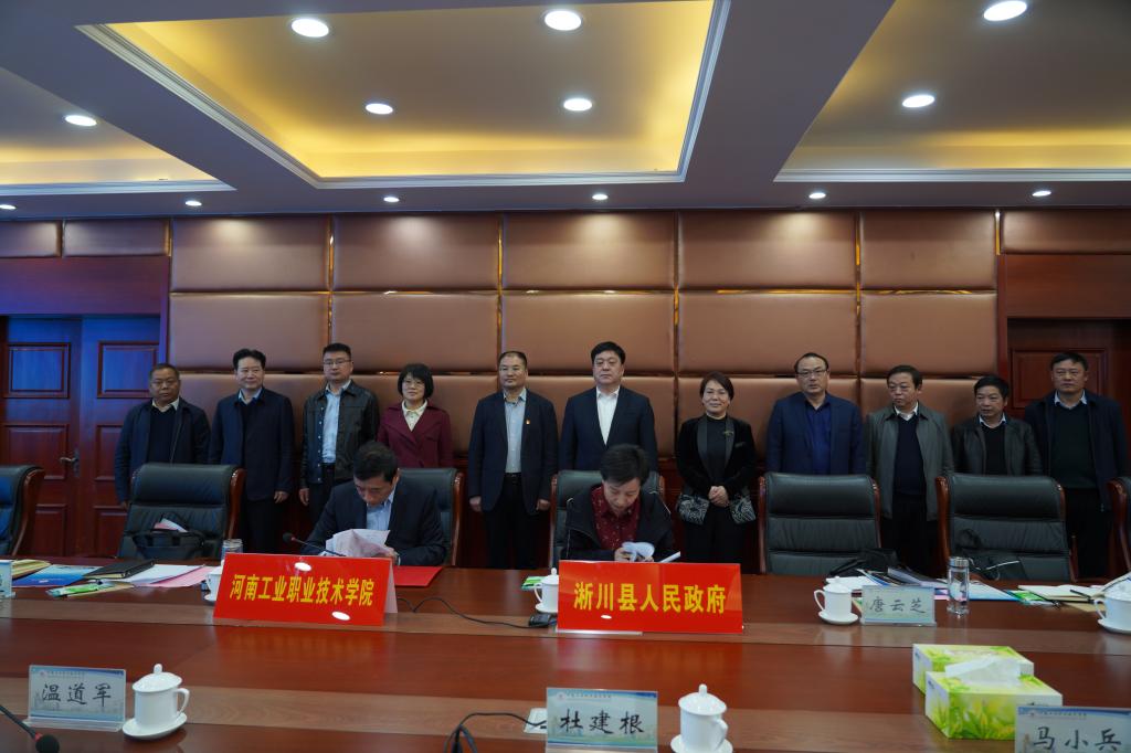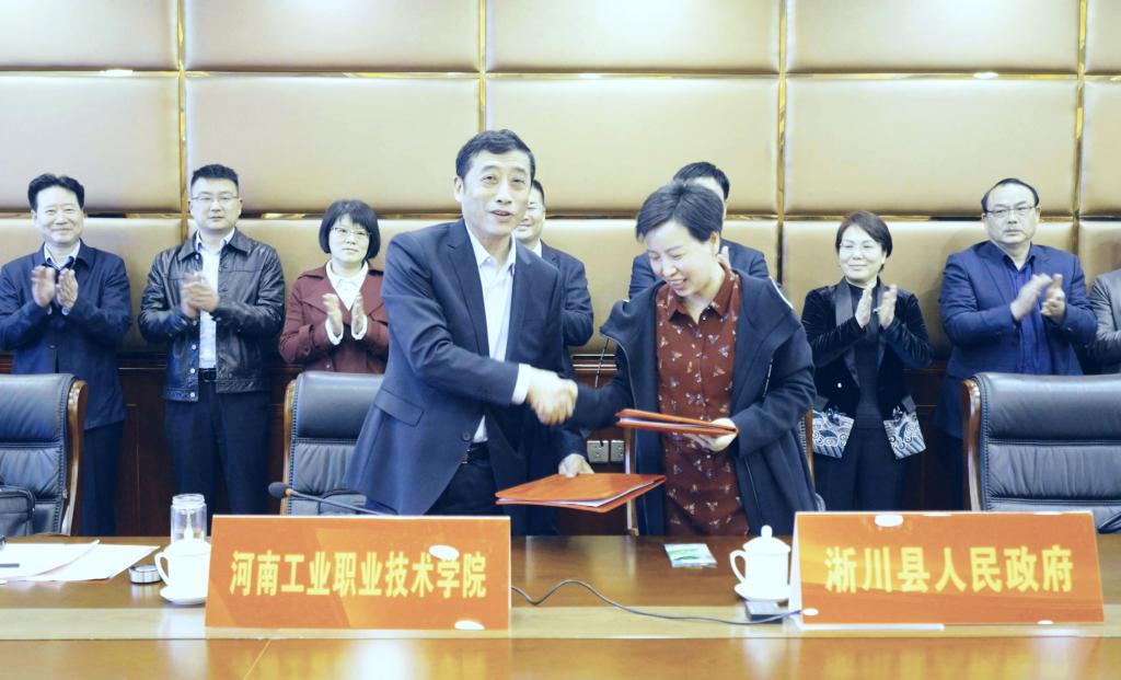 签约仪式上,学校校长王伟与淅川县人民政府副县长唐云芝签订《河南工业职业技术学院 淅川县人民政府 合作框架协议》。