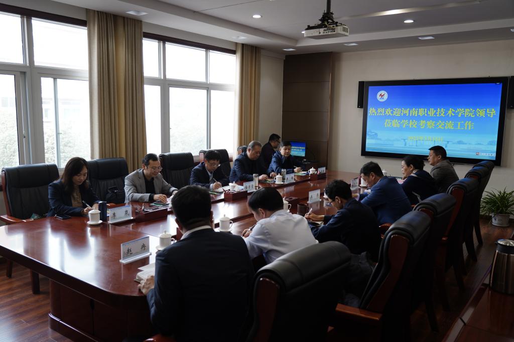 3月15日下午,河南职业技术学院校长梅乐堂、副校长王皓,人事处处长朱永宽、基本建设处处长张燕祥、合作交流处处长李岚一行5人到我校交流工作。学校校长王伟、副校长刘纪山、副校长贾庆成出席,党政办公室、科技外事处、基建处、产教融合中心、人事处负责人参加。