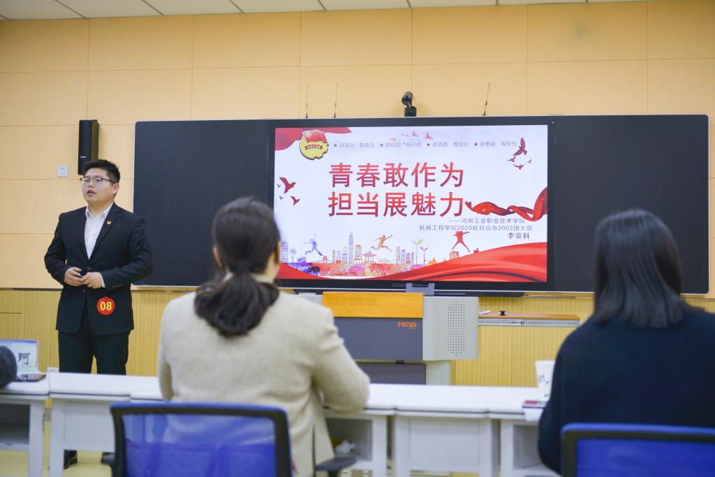 为深入学习贯彻习近平新时代中国特色社会主义思想和党的十九大及十九届历次全会精神,全面贯彻习近平总书记关于青年工作的重要指示精神,落实共青团的十八届六中全会工作部署,进一步提升我校基层团组织的组织力、引领力、服务力和大局贡献度,以优异成绩迎接建团100周年和党的二十大胜利召开,3月26日—27日,校团委在教学楼X3203录播教室举办了2021-2022学年“活力杯”共青团基层基础工作大赛。副校长王仁伟莅临指导,党委组织部、党委宣传部、党委学生工作部、团委负责人及各学院团总支书记担任评委。
