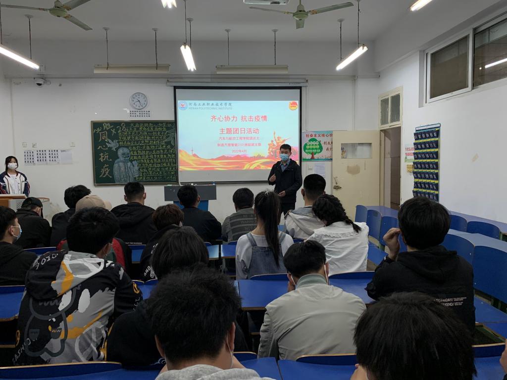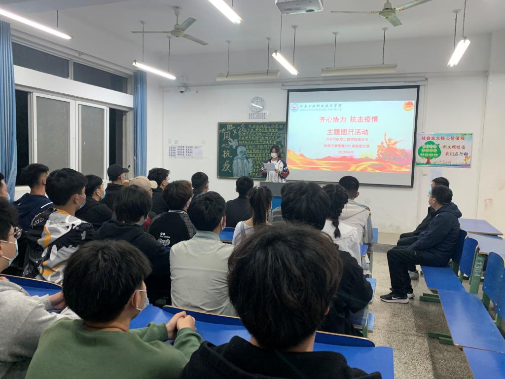 为贯彻落实学校疫情防控工作会议要求,4月3日晚,汽车与航空工程学院汽车合班2101团支部在X1304教室开展“齐心协力 抗击疫情”主题团日活动,该班第二班主任王仁伟副校长参加活动并与同学们亲切交流,本次主题团日活动由团支书张雅晶主持。